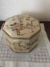 アメリカ、ラングロア社Shariのシリーズで、おしろいが入っていた箱です。いつ誰が入れたのか、白い造花の百合(?)が入っています。